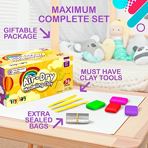 Air Dry Clay 36 Colors, Soft & Ultra Light, Modeling Clay for Kids with Accessories, Tools and Tutorials