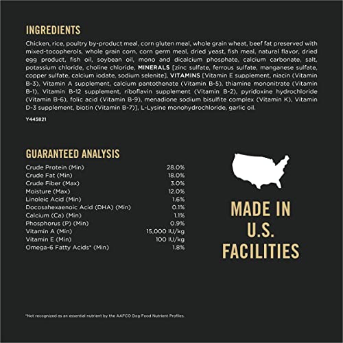 Meet your puppy’s unique nutritional needs with Purina Pro Plan Brand Dog Food Puppy Chicken and Rice Formula dry puppy food. High-quality protein sources, including chicken as the first ingredient, help your puppy develop healthy muscles so he can frolic as long as he wants. DHA from omega-rich fish oil in this puppy formula nourishes his brain and vision development, and calcium, phosphorus and other minerals build strong teeth and bones. This super-premium puppy kibble has no artificial colors or flavors and will keep your puppy running to his bowl. You can feel confident he is getting the 100 percent complete and balanced nutrition his body needs at this early stage of development. Offer up this Purina Pro Plan DEVELOPMENT puppy kibble to show your puppy you care about his overall health and well-being without compromising on the great taste he loves.